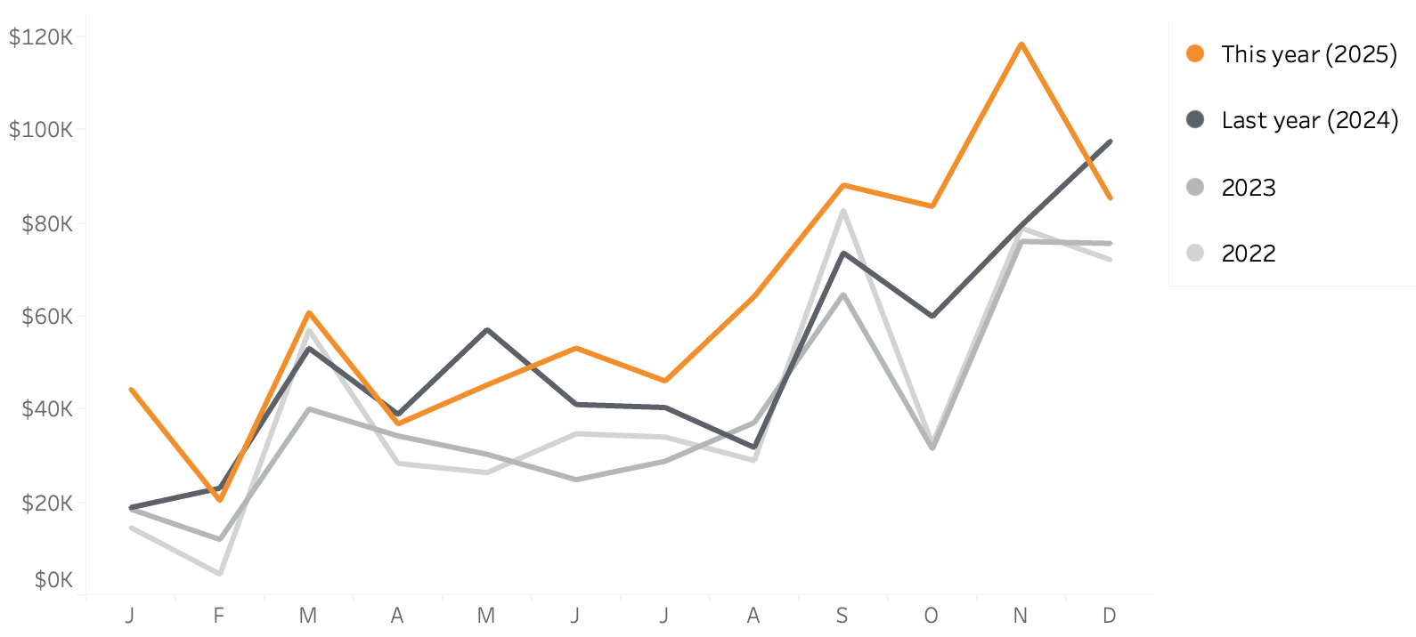 Line-chart: betters ways to compare years
